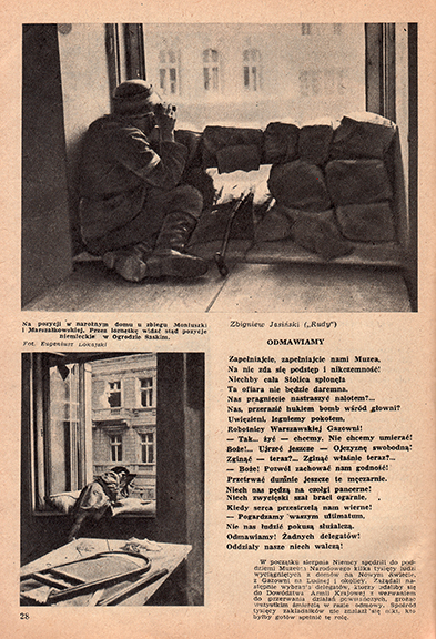 Pre-oryginał”, w którym autor wyjawia, że utwór „Żądamy amunicji” ­miał być natychmiast po jego napisaniu nadany przez „Błyskawicę”. Nadano go jednak go dopiero po kilku dniach – 24 sierpnia 1944 roku – „nie bez przetargów na wyższym szczeblu autorytetów AK. (…) Uległ pewnej cenzurze, nie chciano bowiem obrażać uczuć Polaków w Londynie”. Pierwszą linijkę trzeciej zwrotki „Wyjcie, żałobne wyjce, zawodźcie – tam w Londynie” zamieniono na ostrożne, wyważone: „Czemu żałobny chorał śpiewacie tam w Londynie”.