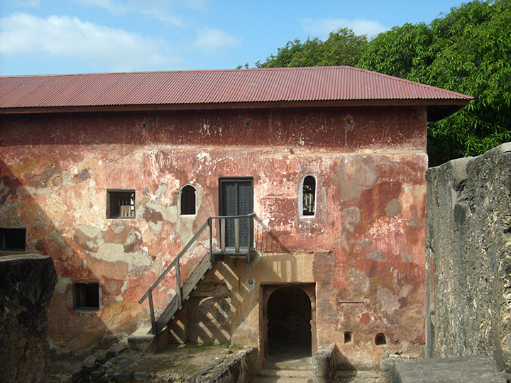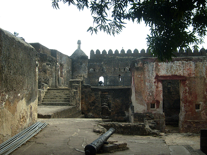 Od momentu przejęcia fortecy przez Arabów w 1698 roku zaczął się ich wpływ w miejscowej sztuce i w wieku XVIII zdobili miasto i fortecę pięknie rzeźbionymi w drewnie i zdobionymi cytatami z Koranu drzwiami. Takie drzwi zachowały się na terenie fortecy, a na sąsiednim Starym Mieście stanowią jego najcenniejszą ozdobę. Widać w ich rysunku także wpływy indyjskie. Mimo, że Stare Miasto jest obecnie dość zaniedbane, niewątpliwie warto je zwiedzić głównie dla tych bogato rzeźbionych drzwi. W dekoracji przeważają elementy roślinne: kwiaty, piękne esy-floresy i na środku cytat z Koranu. Wychylamy się ku morzu w starym porcie Mombasa. Słońce piecze nieznośnie. Sklepy z interesującymi maskami, skromniutki meczet, stare hotele i znakomity punkt widokowy na portugalską fortecę. To stąd widać ją najlepiej. Potem świątynia hinduistyczna zbudowana w latach 50-tych XX wieku. Dla kogoś, kto nie był w Indiach, czy na Sri Lance, jest to niewątpliwie ciekawostka. Ładnie prezentują się zwieńczone kopułkami kaplice na skraju dziedzińca.
