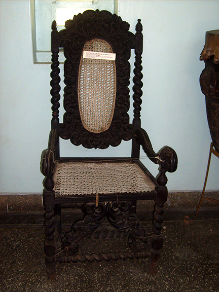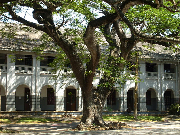 Gdy podjeżdżamy autokarem w stronę kościoła ewangelickiego, otwiera się duży centralny plac ocieniony przepięknie ukształtowanymi gałęziami rozłożystych samanów. Ujrzawszy tę nadzwyczajną koronkę „wyhaftowaną” misternie ponad dachami domów, postanawiam tam zostać, by napatrzeć się do woli na te urocze zakątki. Wrócę do autokaru „tuk-tukiem” za 2 dolary. Umawiam się z jego właścicielem, który niecierpliwie krąży koło mnie w jedną i w drugą stronę. Tu jakiś stary dom ozdobiony barokowymi wazami, tam długi budynek wsparty na masywnych, okrągłych kolumnach, inny, jeszcze dłuższy, o półokrągłych oknach pod samym dachem i wiekowych przyporach. Nad wejściem do jednego z tych budynków herb holenderskiej Kompanii Wschodnioindyjskiej z roku 1669: dwa lwy po bokach trzymają kartusz. Wreszcie centralny, przestronny plac i samany. Na gałęzi jednego z nich cały gąszcz paproci. Obok obsypane białymi kwiatami duże drzewa frangipani. Nareszcie te białe kwiaty wychodzą w miarę ostro. Koronkowe gałęzie samanów także. Obok długiego budynku pod arkadami, ozdobionego starymi latarniami, dochodzę do Muzeum Historycznego mieszczącego się w starej, kolonialnej rezydencji, a potem do meczetu. Ponownie przekonuję się, jak bardzo oryginalna to budowla także wewnątrz. Błyskawicznie dojeżdżam „tuk-tukiem” do autokaru.