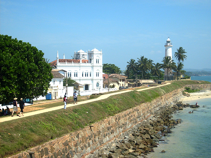 Ostatni punkt całego objazdu wyspy to miasto Galle. Ogromnie ciekawy jest stary portugalski fort, bardzo obszerny, o niskich murach i narożnych bastionach. Mury fortecy zostały podwyższone potem przez Holendrów, którzy wykorzystali całą portugalską dawną strukturę. Wewnątrz murów stare, bardzo malownicze uliczki, biały, neorenesansowy meczet przypominający swym kształtem portugalskie kościoły (pewno wykorzystano jego oryginalne mury) i latarnia morska. Po drugiej stronie obszernej zatoki bieleje wśród zieleni wielka buddyjska stupa. Bacznie przyglądam się domkom krytym okrągłą portugalską dachówką i choć teraz to siedziby stowarzyszeń muzułmańskich, nadal zachowują portugalski charakter. Wdzięku dodają im powyginane, wysmukłe palmy kokosowe. Pod murem fortu mała dwukółka i zaprzężony do niej młody byczek rasy zebu.