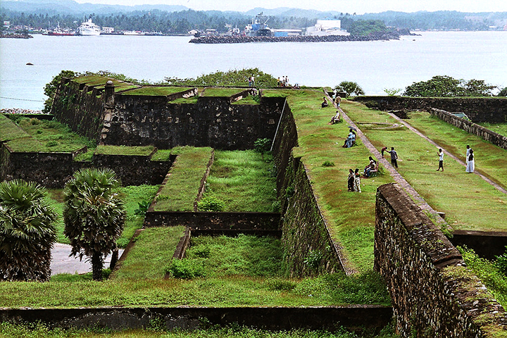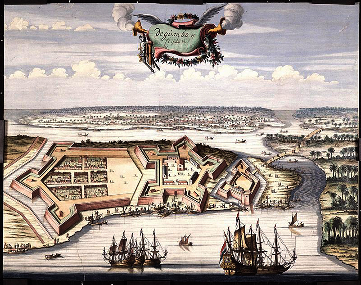 Obecność portugalska na Cejlonie trwała krótko, zaledwie sto pięćdziesiąt lat. Portugalczycy zainteresowani byli głównie eksportem cynamonu, którego Cejlon był jedynym producentem. Zdążyli jednak zbudować kilka fortów. Poza Galle także w stolicy wyspy, Colombo i 40 km na północ od stolicy, w Negombo oraz w kilku innych miejscach. W roku 1640 pojawili się już Holendrzy i to oni na ponad sto kolejnych lat stali się panami wyspy. Udało mi się znaleźć holenderski plan fortu w Negombo z roku 1640. Myślę, że oddaje on dość wiernie jego portugalską strukturę. Wpływy portugalskie są do dziś widoczne w architekturze kościołów katolickich, a także w nazwiskach i w miejscowym języku usianym zapożyczeniami z języka portugalskiego.