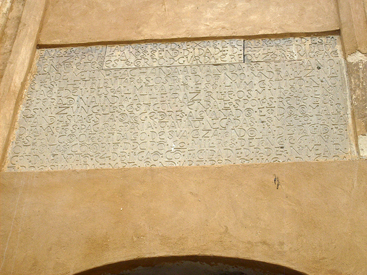 En 1635 o capitão mor Francisco de Seixas de Eça Brandão foi de esta fortaleza por 4 anos sendo de idade de 27 e a reedificou de novo e fes este corpo de guarda e reduzio a sua magestade a costa de Melinde achando a alevantada pelo rei tirano e fes lhe tributarios os reis de Otondo Mandra Luziva e Iaca e deu pessoalmente a pate e soi hum castigo não esperado na Índia athe arrazar lhe os muros apenou os Muzungulos castigou Penba e os povos rebeldes matando a sua custa os regedores alevantados e todos os mais de fama e fes pagar as parias que avião negadas a sua magestade que por tais serviços o fes fidalgo de sua caza tendo já despachado por otros tais com o ábito de xpõ (Cristo) 50 mil reis de tença e 6 anos de governador de Iafa xpão (cristão) e 4 de Biligão com faculdade de poder nomear tudo em sua vida. Anno Domini 1638 anos.