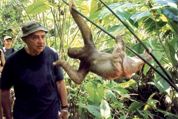 Był to leniwiec, zwierzę nie tylko arcy rzadkie, ale osobliwe. Encyklopedia spowinowaca je z pancernikiem i mrówkojadem i nazywa bradypus, mówi że to zwierzę nocne i samotnikujące, że żywi się liśćmi i rosą. A ja sądzę inaczej: to najwyraźniej byt z innego świata, przedpotopowy rozbitek, świadek odmiennego porządku, kontestator ruchu i nadmiernej mobilności, czysty symbol rozsądnego bytowania. Wyglądał mi na dostojne stworzenie, które nie zdążyło (nie spieszyło się niepotrzebnie), do arki. Uratowało się cudem na niebotycznej sekwoi, aby wespół z iguaną świadczyć o minionych czasach, kiedy rządziły inne prawa i obowiązywały odmienne hierarchie.