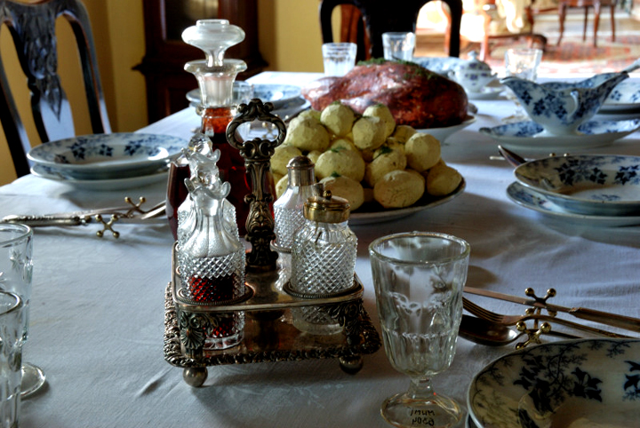 Polska tradycja kulinarna to także sposób podania potraw na staropolskim stole. Polskie zastawy stołowe mają swoje bardzo dawne tradycje, sięgające uczty u Bolesława Chrobrego. Zastawy były złote i srebrne, cynowe, drewniane, potem również porcelanowe i fajansowe. Stół najczęściej ustawiony był na kształt podkowy. Przykrywano je białymi obrusami adamaszkowymi sprowadzanymi z Holandii i Kolonii, zdobiono kwiatami, często polnymi układając je nie wysoko, ale w poziomej linii wzdłuż stołu. W magnackich domach półmisków nie stawiano bezpośrednio na obrusie, ale na tzw. prawdach, czyli metalowych tacach. Przed każdym gościem kładziono talerz z małą serwetką zakrywającą chleb i łyżkę. Noży i widelców, a niekiedy i łyżek nie podawano, ale każdy przynosił je ze sobą. Łyżki noszono ze sobą za pasem lub w cholewie buta. Złote lub srebrne łyżki grawerowane były na końcach w żartobliwe sentencje i herb właściciela. Widelce pojawiły się na polskich stołach wcześniej niż we Francji i w XVII w. były już w powszechnym używaniu. Jeśli nie było przy stole widelca, a tego wcześniej nie noszono przy sobie, był zwyczaj jedzenia palcami, co nikogo nie gorszyło i do dziś gorszyć nie powinno, gdyż zwyczaj ten uchował się w Polsce aż do XVII w. we wszystkich krajach Europy z wyjątkiem Włoch. „Nożenek”, tak zwano dzisiejszy nóż, używano w Polsce stosunkowo szybko, bo już XVII w. Wtedy to zaczęto go nosić ze sobą w futerale wraz z widelcem. Często sztućce oprawiano w kość słoniową, bursztyn, lub zdobiono szlachetnymi kamieniami. Jędrzej Kitowicz tak opisuje zastawy stołowe w XVIII wieku: