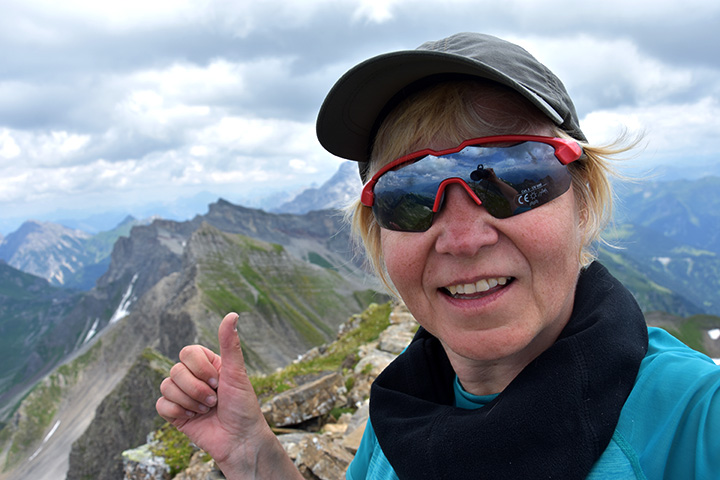 W 2018 roku postanowiłam zawalczyć po raz trzeci, lecz tym razem od strony Szwajcarii. Przeszłam przez kilka górskich grzbietów i tuneli. A potem szłam po stromym, mocno osypującym się piargu i częścią grani, która nie była już taka trudna. Na szczycie odetchnęłam z ulgą, uniosłam ręce w geście zwycięstwa i wydałam okrzyk radości! Nikt mnie przecież nie słyszał, oprócz wiatru szepczącego mi do ucha: „A jednak, zrobiłaś to! Sama!”.  Przez moment zakręciła mi się łezka w oku, pewnie z powodu tego wiatru. Wpisałam do książki wejść informację o 50-tym wierzchołku i zrobiłam kilka zdjęć. Jednak zdobycie góry, to dopiero połowa drogi, więc zaczęłam odwrót, gdy nad głową pojawiły się ciemne chmury.