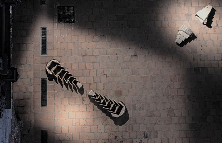 Arenga (2015-2017), a recent floor installed sculpture consists of two open forms, repeated in ever smaller or larger scale. The two sections of sculpture parts face each other directly. Litwiniuk comments this sculpture was inspired by a Papal Bull, that the sculpture elements resemble the pages of a book, each element one page. The “story” of each element exists with its own “language”. The sculpture recalls the story of an Amerindian tribal speaker I met in British Columbia who once commented in the Squamish Valley, “The trees are our books, and the forest is our library.” The implication is that knowledge exists within nature itself, uncodified, as a library of life, so to speak.