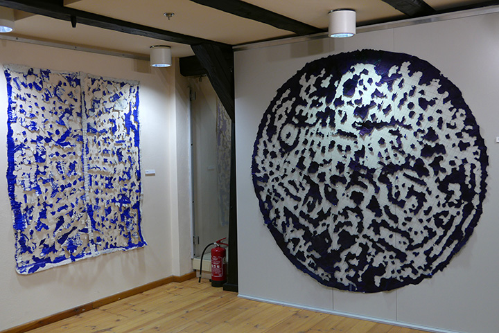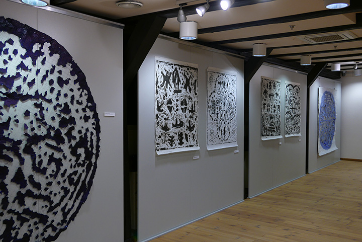 Tytułowe W przestrzeni papieru jest komunikatem i zarazem, już na wstępie, daje nam wyobrażenie o prezentowanych na wystawie dziełach. 30 prac z lat 1970 – 2019 zawisło w muzealnej przestrzeni, w tym najwięcej tzw. „papierów wolnych”, wydzieranych, swobodnie zwisających, najbardziej charakterystycznych spośród wszystkich dzieł. Oprócz obrazów, pokazano prace graficzne – estampaże (gipsoryty), wykonane na papierze ryżowym.