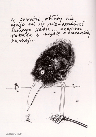 Stan ducha i materii ironiczno-anarchicznego Ptaka był zarazem instynktowną ucieczką przed zaszufladkowaniem, przed nalepką-przylepką, przed triumfalnym uchwyceniem-odkryciem przez krytyków i /lub publiczność. To nie miał być ptak w klatce, nawet gdyby była złota. Miał buszować na wolności by być ciekawym dla samego siebie. Z chłopięcą ciekawością wciąż odkrywać nowe mielizny, doły i zapadliska, przylądki i zatoki na bezmiarze żywiołu wody. Jak niegdyś podczas letniego byczenia się na sopockiej plaży.