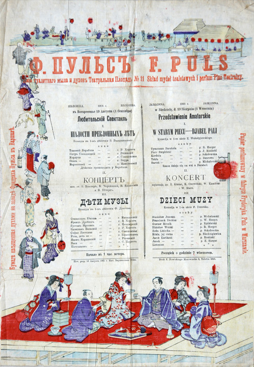 Być może było to pierwsze lub jedno z pierwszych przedstawień tego teatru. Sugeruje to świetna organizacja transportu (pociąg specjalny) i duży, kolorowy plakat wydrukowany na japońskiej, pachnącej bibułce. Sponsorem przedstawienia i plakatu był pan Fryderyk Puls, warszawski właściciel fabryki pachnideł i kosmetyków Puls S.A. Fryderyk Puls był sponsorem wielu podobnych przedsięwzięć, między innymi na podarowanej przez niego pachnącej bibułce drukowano zaproszenia do teatru w Kamiennej (kieleckie). Dochód z przedstawienia Bzurowie przeznaczyli na zakup drzewek, którymi później obsadzono jabłonowskie ulice.