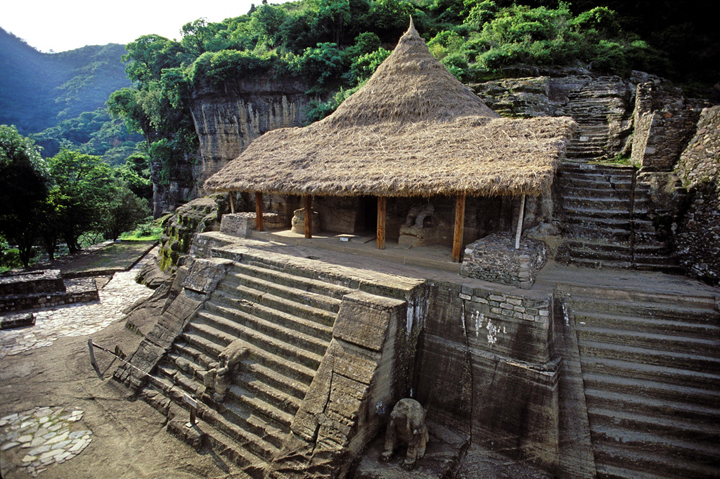 Fatalną drogą szutrową przez dżunglę z San Cristóbal de las Casas do Palenque, jadę cały dzień. Autobus kilkakrotnie pokonuje rzekę w bród. Nazajutrz przyjeżdżam z miasteczka bardzo wcześnie, zanim na terenie ruin Palenque pojawią się tłumy turystów. Pałac Inskrypcji z grobem króla Pakala wewnątrz, grzebienie świątyń Słońca, Krzyża i Liściastego Krzyża, liczne płaskorzeźby, za nimi ściana dżungli robią na mnie wielkie wrażenie. W drodze do Villahermosa zatrzymuję się na krótko w mieście Campeche, gdzie nad morzem stara forteca hiszpańska z narożnymi basztami. W Villahermosa zaduch niemożliwy, wilgotność powietrza sięga zenitu. Pochmurno i deszczowo. W Parku La Venta olbrzymie głowy Olmeków, rzeźby jaguarów, ołtarze. Kluczę błotnistymi ścieżkami, by obejrzeć dokładnie wszystkie rzeźby olmeckie.