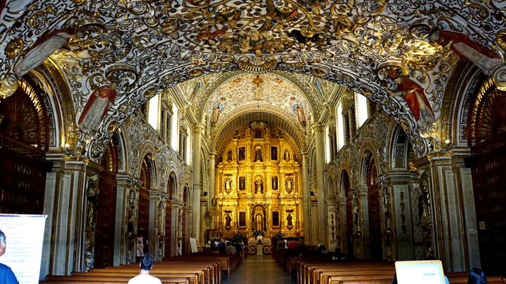 Już po powrocie do stolicy wybrałem się z Velią do Tuli, stolicy Tolteków, znanej z potężnych posągów atlasów, które niegdyś podtrzymywały nieistniejący obecnie dach świątyni. Chyba dwa razy odwiedziłem Pueblę, trzecie miasto Meksyku. W mieście potężna katedra i wiele innych kościołów, w tym słynna Kaplica Matki Boskiej Różańcowej (XVII) w kościele Św. Dominika (XVI). Miasto, jak żadne inne, ozdobione jest mauretańskimi kafelkami. Zapamiętałem wspaniały widok dwóch wysokich, ośnieżonych szczytów, Popocatépetl (5500 m) i Iztaccihuatl (5230). Objechałem też prowincję Puebla podziwiając Wielką Piramidę i kościół w Cholula (XVI) na jej szczycie oraz nadzwyczaj piękną świątynię Matki Boskiej w Tonantzintla (XVI), zbudowaną przy znacznym udziale artystów indiańskich. Wewnątrz wygląda jak kolorowy porcelanowy klejnocik…