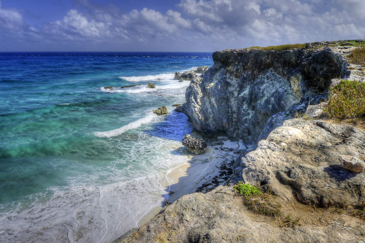 Gdy pod koniec dnia opuszczam teren zabytków, z parkingu rusza ostatni samochód. Podbiegam i okazuje się, że pasażerowie – małżeństwo franko-kanadyjskie oraz Francuz – jadą do Puerto Juárez, a stamtąd na Wyspę Kobiet (Isla Mujeres). Jadę razem z nimi. Lokujemy się w dużym namiocie przy plaży. W namiocie tylko hamaki do spania, pod nimi piasek. Pod osłoną nocy, w strojach naturalnych, rzucamy się we czwórkę w morze. Potem pijemy długo wino, koniak i inne trunki. Jest bardzo wesoło! Kanadyjczyk rozciął sobie w morzu nogę, więc nazajutrz Francuz i ja jedziemy na rafę koralową sami. Do spółki wypożyczamy jedną maskę. Pierwszy wchodzi do morza Francuz, a ja, gdy zobaczyłem tę orgię barw i kształtów, zapomniałem o bożym świecie i zamiast pół godziny, spędziłem zanurzony z głową pod wodą dwie i pół godziny. Francuz z trudem się na mnie doczekał. Nie widziałem nigdy i nigdzie tak pięknego podwodnego świata!!! Nie ma słów na opisanie tych cudów!!!