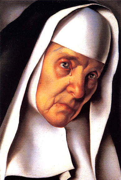 – Byłam bardzo przygnębiona – mówiła. Pójdę do katolickiego klasztoru. Zostanę zakonnicą. I wtedy będę malować. Ale nie chcę wystawiać, niepotrzebny mi sukces. Depresja, załamanie nerwowe, depresja. Byłam we Włoszech i zapytałam, „gdzie jest klasztor?”. A oni powiedzieli, „ależ tu, w Parmie, to całkiem blisko”. Znalazłam klasztor i zwróciłam się do zakonnic. A one powiedziały: „Usiądź moje dziecko”. To było takie miłe, że powiedziały do mnie „moje dziecko”. Byłam bardzo przygnębiona i czekałam, może z 10 minut, może ze 20. Nie wiem. I następnie zobaczyłam starszą panią, która podeszła do stołu i to była ona. To była matka przełożona. Powiedziała „dziecko, matka przełożona jest tutaj”. Poprosiłam, żeby przyjęła mnie do klasztoru. Ale nagle zapragnęłam namalować tę fantastyczną twarz, utrwalić wyraz twarzy tej kobiety. W jej oczach było cierpienie. Wyszłam nie mówiąc ani słowa. Kiedy przyjechaliśmy do Ameryki powiedziałam do męża „Chcę malować”. Byłam pierwszy raz w Nowym Jorku i codziennie jeździłam do starej, brudnej pracowni. Postawiłam tam krzesło, położyłam kawałek czarnego i kawałek białego materiału. I ona tam była. Matka przełożona siedziała na krześle. I mówiłam do niej. Powiedziałam „głowa trochę bardziej w lewo, dziękuję bardzo, odpocznijmy”. Jakbym oszalała. Rozmawiałam z nią i myślałam, że tam jest. Była jak światło.