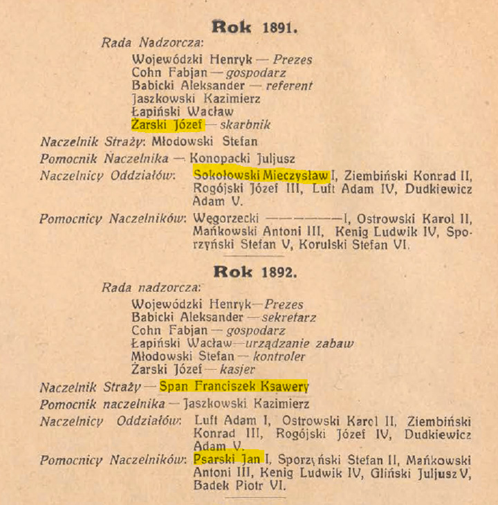 Mieczysław Sokołowski, nasz pradziadek, syn Januariusza Sokołowskiego, Powstańca Styczniowego (młodszego brata Dionizyi z Bocultów Sokołowskich, do której pisał Jan Chyliczkowski), ojciec naszego dziadka Wincentego Sokołowskiego, pochowany w grobowcu rodzinnym na piotrkowskim cmentarzu, obok żony Antoniny z Leżańskich, jest wymieniony przez Michała Rawitę Witanowskiego w „Zarysie dziejów Piotrkowskiej Ochotniczej Straży Ogniowej. Władze i Korpus Oficerski, 1878-1928”, jako naczelnik oddziału w latach 1887 – 1891.