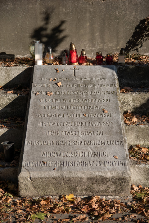 Zawsze ciekawił mnie ten tajemniczy piotrkowski cmentarz. Niezwykłe, wspaniałe stare pomniki wzbudzały mój zachwyt. Napisy nagrobne wiele mówiły o ludziach, którzy zapisali się dla historii miasta i kraju piękną kartą, można się było też dowiedzieć o walkach, które trzeba było stoczyć, abyśmy mieli niepodległą Polskę. Co roku szliśmy pod pomnik Powstańców Styczniowych, aby zapalić znicze. Wyryte w kamieniu nazwiska rozstrzelanych przez Rosjan Powstańców, układały się w modlitwę. Idąc aleją do naszego grobowca, przez lata zatrzymywałam się po drodze przy grobie ze zdjęciem młodego, uśmiechniętego chłopaka. Tadeusz Badowski, lat 20, zginął w wojnie bolszewickiej w 1921 r. Stawiałam świecę na jego grobie, symbolicznie, dla wszystkich, którzy wtedy zginęli. Nie wiem, czy ten grób jeszcze jest, potem go już nie widziałam.