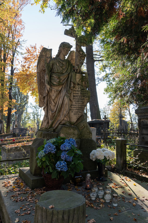 Stary cmentarz w Piotrkowie Trybunalskim zawsze kojarzył mi się z szelestem złocistych liści pod stopami, spadającymi z drzew kasztanami, zapachem różnokolorowych jesiennych chryzantem i wielką łuną na niebie od palących się setek tysięcy zniczy i świec. Do tego gwar uroczyście ubranych ludzi idących odwiedzić swoich bliskich, ksiądz stojący przy głównej bramie i proszący o modlitwę, dźwięk kościelnych dzwonów i cisza wspomnień bijąca z przepięknych, starych, kamiennych, porośniętych mchem pomników.