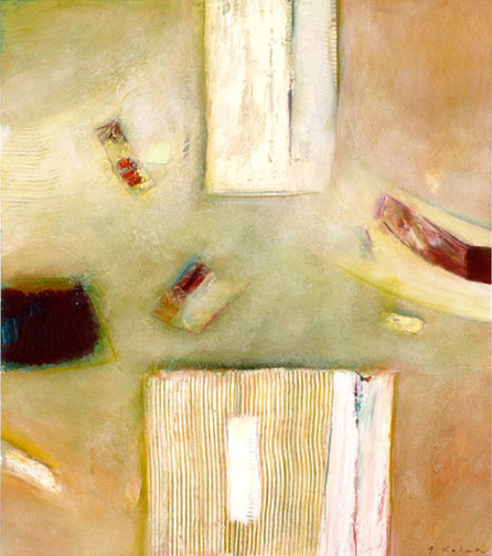 Jak gdyby przeciwległym biegunem sztuki użytkowej jest malarstwo artysty. Abstrakcyjny świat kolorów, kształtów i faktur interpretuje emocje i stan umysłu. Dotyka sfery ducha i odwołuje się do wrażliwości odbiorcy. Jeśli widz jest otwarty, odbije tę abstrakcyjną, właściwą artyście rzeczywistość. Malarstwo Jerzego Kołacza jest podkreśloną światłem, nastrojową poezją, wizualną muzyką, jest pobudzającym wyobraźnię niedopowiedzeniem. Nie wiele ma wspólnego z groteską. Jerzemu Kołaczowi udało się jednak utrzymać balans pomiędzy tak odmiennymi nurtami twórczości artystycznej, sztuką użytkową, a malarstwem, pomiędzy deformującą świat karykaturą, a poszukiwaniami ewokacji ludzkich emocji.