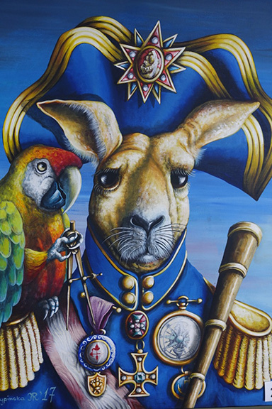 W moim referacie nie może zabraknąć akcentu aborygeńskiego. Julianna Bednarowicz z Alice Springs stworzyła serię portretów we współpracy ze znanymi artystami aborygeńskimi: Daniel Rex Japananngka, Kudditji Kngwarreye, Gracie Morton, Polly Ngale, Mary Dixon Nungurray, Gloria Petyarre, Kathleen Petyarre, Violet Petyarre, Judy Watson, Long Jack Philipus, Paddie Sims i Willie Tungurray, Unikatowe wizerunki połączyła z ich własnymi pracami. Mąż Julianny, Ryszard, jest autorem książki „Sztuka Aborygenów”.