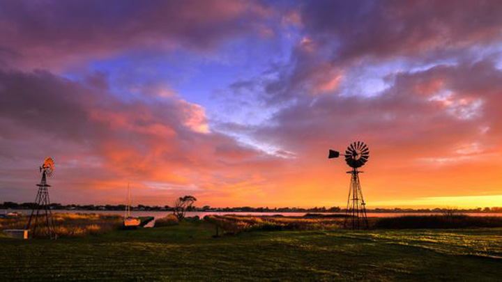 Zjeżdżając z góry do Victor Harbour podziwiamy te cudowne kolory z lotu ptaka. Zatoka jest czysto błękitna, brzegi są żółto-płowo-oliwkowe, spiczaste czubki sosenek podkreślają obłość pagórków. Do tego jeszcze kolorowe dachy usadzonego wśród tych wzgórz i lasków miasta…