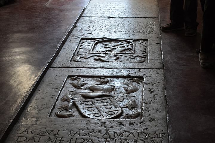 Znacznie ciekawszy jest leżący poniżej kościół Matki Boskiej Różańcowej. Był otwarty. W środku kilka kobiet stroiło ołtarze. Przyjrzałem się posadzce: jedna przy drugiej nagrobne płyty z białego marmuru z napisami pochodzącymi z… XVI wieku. Same arystokratyczne nazwiska portugalskie: Mascarenhas i inne. Tego bym się nie spodziewał tutaj, w tym gaju palmowo-mangowym, w tym miejscu zapomnianym na pozór przez Boga i ludzi…