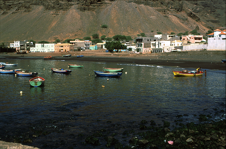 Około 10-tej rano statek przybił do nabrzeża portu Tarrafal na Wyspie Św. Mikołaja. Podczas dwugodzinnego postoju do jego przestronnych ładowni wjeżdżały wielkie TIR-y obładowane workami ryżu i innych towarów. Słońce piekło nieźle. Obserwowałem z pokładu wyniosłe góry: żadnej roślinności, kamienna pustynia, a wszystko w kolorze ciemnej ochry, typowy powulkaniczny krajobraz. Na najbliższej plaży czarny piach leczniczy z domieszką tytanu. W planie jest założenie tu uzdrowiska dla chorych na reumatyzm. Tymczasem czekoladowi pasażerowie statku zainteresowali się białym, przy nich jakby obsypanym mąką starszym Luksemburczykiem, a teraz przyszła kolej na mnie: wszak byliśmy dwoma jedynymi cudzoziemcami na pokładzie! W trakcie rozmowy zwierzali mi się, że już z nim rozmawiali, więc i ja postanowiłem nawiązać z nim rozmowę. Wracał z Wyspy Fogo (Ogień) i od jakiegoś już czasu zwiedzał archipelag mając bazę w Mindelo, u brata, właściciela hotelu.