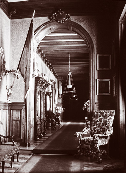 …Wiele mówiono w Łańcucie, gdy dowiedziano się, że książę i księżna Kentu przybyli tam z wizytą – opisuje dalej hrabia Alfred – Na dworzec przyjechali o pół do trzeciej po południu. Gdy wychodzili z wagonu zamkowa orkiestra zagrała „God Save the King”, potem pojechaliśmy do zamku pojazdem zaprzężonym a’la Daumont. Przed herbatą książę spacerował ze mną, poszliśmy obejrzeć stadninę. Po obiedzie odbył się bal w dużym salonie. Beck z żoną przyjechali nazajutrz rano w towarzystwie naszego kuzyna Józefa. M.in. byli zaproszeni Johannes i Marizza Lichtensteinowie i brat mój Jerzy. Książę nigdy nie był zmęczony rozrywkami. Oczarował mnie nieudawaną przyjemnością jaką odczuwał z pobytu w zamku. Nigdy nie było księcia bardziej naturalnego, jak ten piękny syn królewskiego domu Anglii, ze swoimi ruchliwymi rysami i błyszczącymi oczami. Urodzony sportowiec, barczysty, atletycznej budowy, zgrabny, po całych dniach jeździł konno i tańczył aż do brzasku. Trzeciego wieczoru jego pobytu urządziliśmy obiad w kostiumach, potem nastąpiły szarady, w których książę grał główną rolę. Portret jego nie byłby zupełny, jeśli nie powiedziałbym o jego uwielbieniu dla zachwycającej księżny, dawnej księżniczki greckiej, której obecność w Łańcucie była jednym z najmilszych wspomnień.