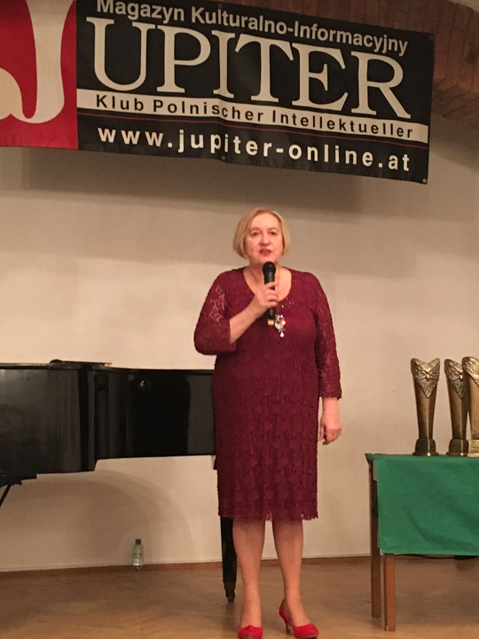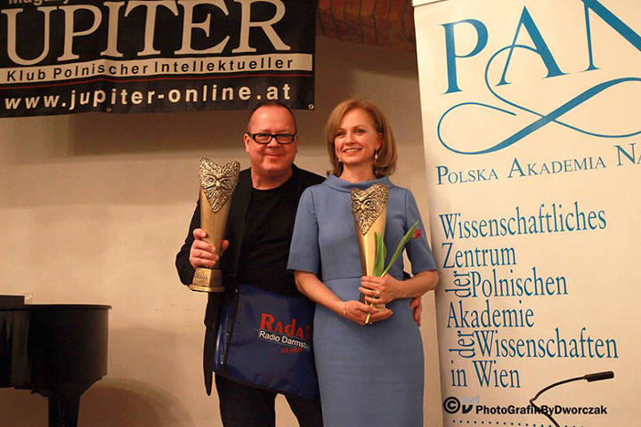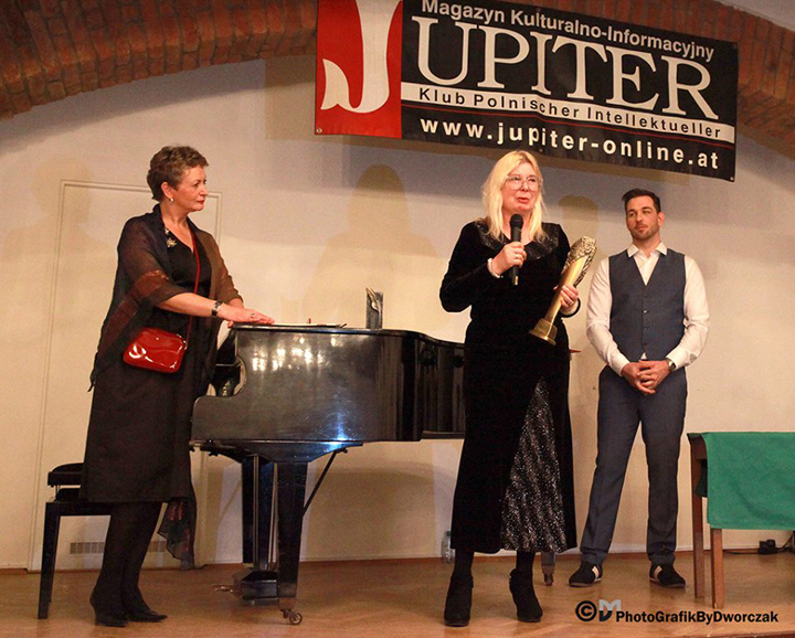 24 marca 2018 roku podczas gali w Sali Sobieskiego w Polskiej Akademii Nauk w Wiedniu, miało miejsce wręczenie statuetek – Złotych Sów Polonii, za działalność na rzecz kultury polskiej poza krajem w różnych kategoriach (literatura, muzyka, film, teatr, sztuki plastyczne, media, działacz polonijny, zasługi dla Polski i Polaków). Złote Sowy Polonii przyznaje Klub Inteligencji Polskiej w Austrii oraz pismo „Jupiter”, którego redaktorem naczelnym jest pani Jadwiga Hafner, pomysłodawczyni nagrody i niezmordowana organizatorka tej imprezy.